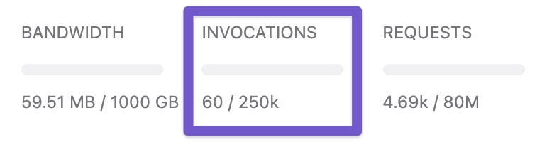 Like the bandwidth and request tracking in Gatsby Cloud, users can track their invocation count across all their Gatsby sites on any workspace landing page as well as site-specific usage on any site page.