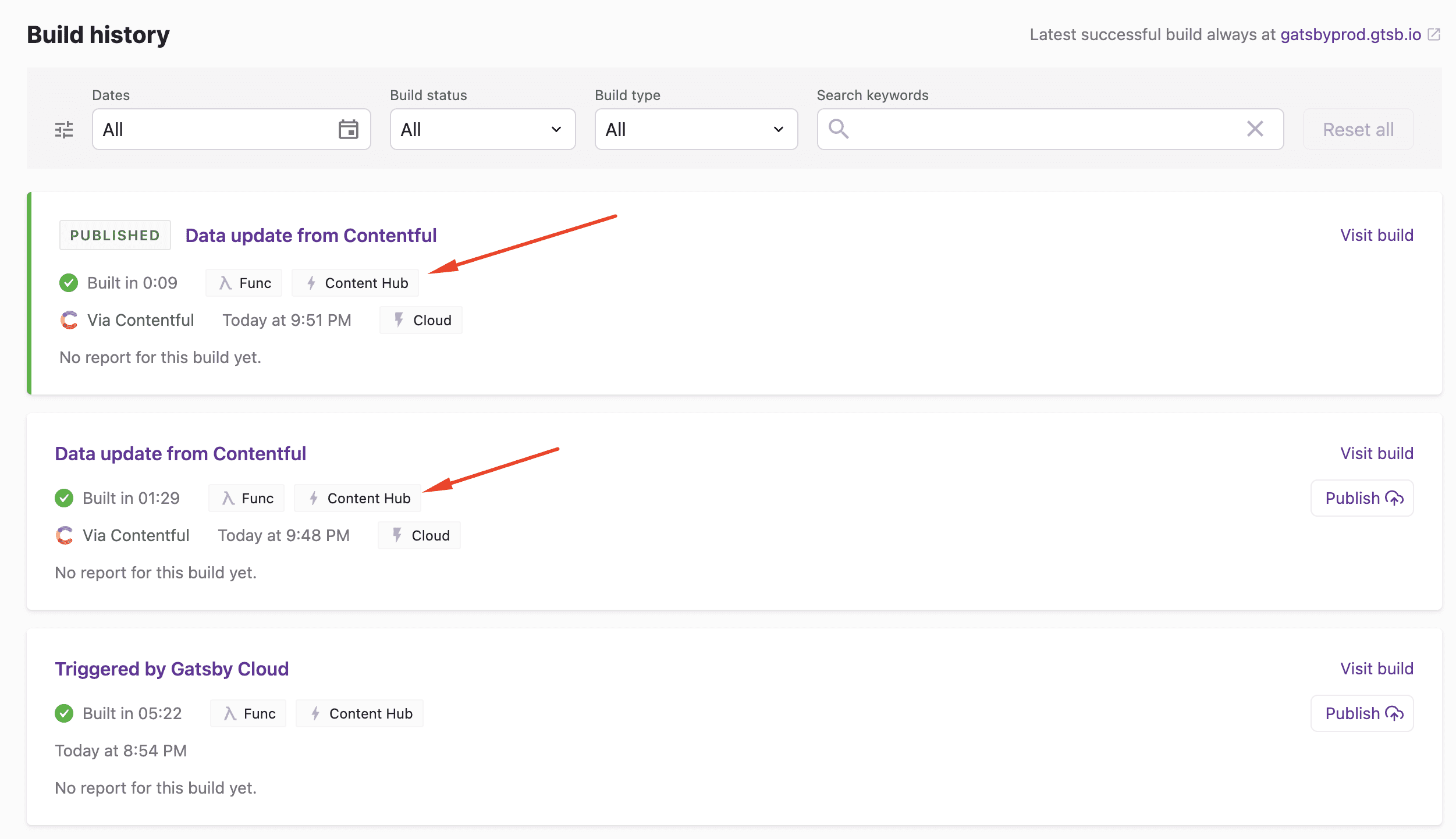 Viewing Builds triggered by Content Hub